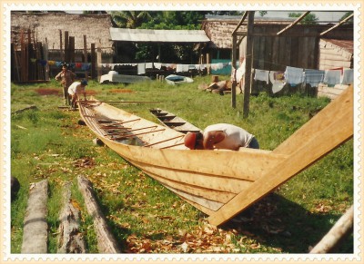 Etter frokost på min første dag i Yurimaguas gikk jeg ned til havna og så på båtene, men fant ingenting som så ut til å passe oss; verken i størrelse eller pris. Jeg var rundt både i havna og i byen og snakket med folk som hadde greie på båter og reiser på elvene. Etter et par dager fikk jeg kontakt med en mann som holdt på å bygge en båt på plassen utenfor huset sitt. Han fortalte at han bygget båten til seg selv. Den hadde kjølen strekt og et par bord i høyden da jeg traff på ham. Han var villig til å selge båten og hjelpe meg å få bygget den ferdig slik jeg ville ha den. Jeg er ingen båtbygger, men jeg hadde en ide om hvordan den skulle se ut. Sammen med båtbyggeren tegnet vi en enkel skisse av båten både utvendig og innvendig.