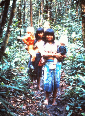 På besøk hos en av landsbyene til Shapra indianerne, Shoroya Cocha. Ikke alle vil bli tatt bilde av! Det hendte ofte de første årene i jungelen.