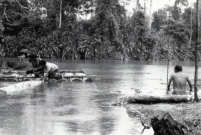 sekker med egg fra vannskillepadder som de fant på sandbankene. De skulle saltes ned og sendes til byen der de det ble solgt som en delikatesse. Salget brakte soldatene en liten ekstrainntekt. Vi fikk noen egg som Gro laget omelett av. Vi hadde flere samtaler med beboerne i de 2-3 husene på dette stedet. De fortalte om Achuar indianere som bodde i bielvene i øvre Morona på begge sider av grensen mellom Peru og Ecuador. De var krigerske og hadde stadige feider seg imellom. De ble tidligere kalt Jivaros og var kjent for å forminske hodene de hadde hogd av sine fiender fra andre stammer. Vi hadde ingen mulighet til å besøke noen av disse landsbyene da, men noen år senere var vi på besøk til en av Achuar landsbyene.