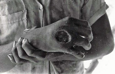 Blodforgiftning! Vi var mange dagsreiser fra nærmeste sykehus eller lege, men vi hadde noen medisiner, bl.a. penicillin med oss. Vi behandlet sårene med desinfiserende væske og antibiotikasalve morgen og kveld. Det ble også sendt opp mange bønner for situasjonen. Til vår store lettelse så vi at betennelsen vek tilbake. Vår takknemlighet og glede var stor da feberen og smertene ble borte etter noen dagers behandling.