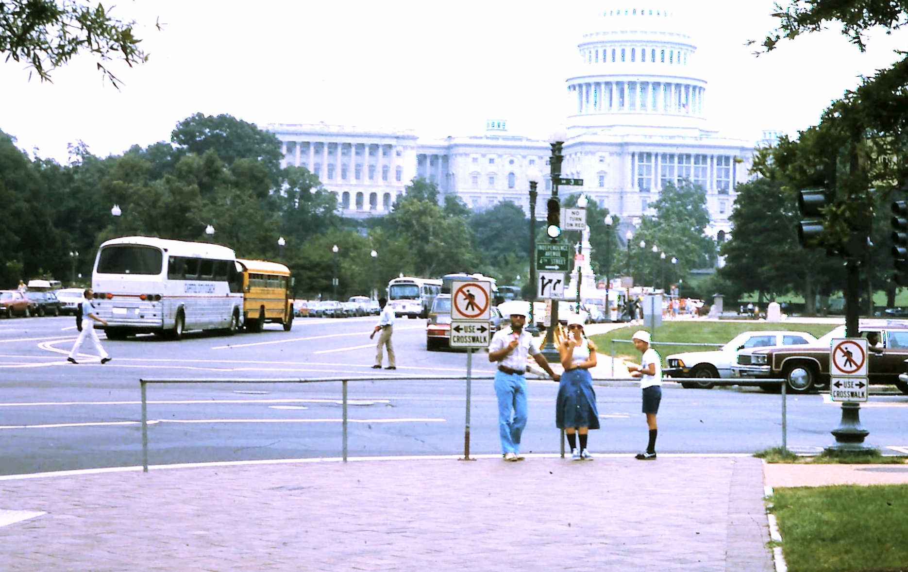 Chris kjørte oss til flyplassen. Reisen videre gikk til Washington D.C. Dave, en av pilotene i Yarina Cocha hadde anbefalt oss å dra innom hovedstaden på vår vei til New York der vi skulle ta flyet til Norge. Vi undersøkte priser, og fant ut at det fortsatt var slik at man kunne fly inntil et visst antall mil for samme pris. Dermed ble det ikke dyrere å reise innom Washington. På flyplassen i Washington var det et byrå som skaffet oss et rimelig og greit rom på et hotell i gangavstand fra alle severdighetene. Dave hadde gitt oss en oversikt over hva han mente var et «must» å se, noe som selvsagt inkluderte Capitol, det Hvite Hus, Washington Tower og de store monumentene i parken ved «the Mall». På listen var også flere museum, bl.a. Smithsonian Air and Space Museum der vi var i over seks timer! Men vi var også på National historisk museum og andre. Både barn og voksne fant alt interessant, men til slutt ville ikke bena mer! En tur med t-bane til John F. Kennedy Center rakk vi også. Vi fikk en interessant omvisning der. Stedet lå nydelig til ved Potomac elven. Vi må ha gått flere mil fra vi kom torsdag til vi fløy videre til New York tidlig søndag morgen. Den flyturen tok bare en time.
