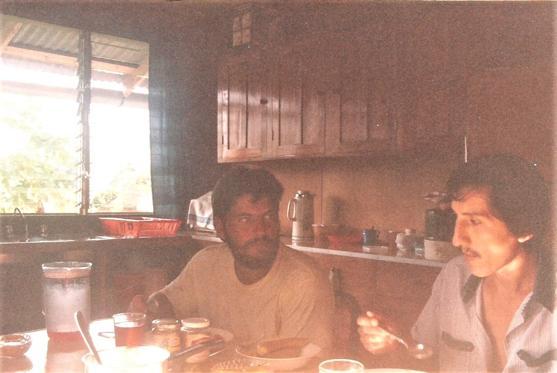 Bodil i aksjon, her hjemme hos en familie i Saramiriza. På det lille bildet sees Manolo og Isidro ved kjøkkenbordet i 2.etasje. Isidro ble i Saramiriza en måneds tid etter at vi reiste til Norge.