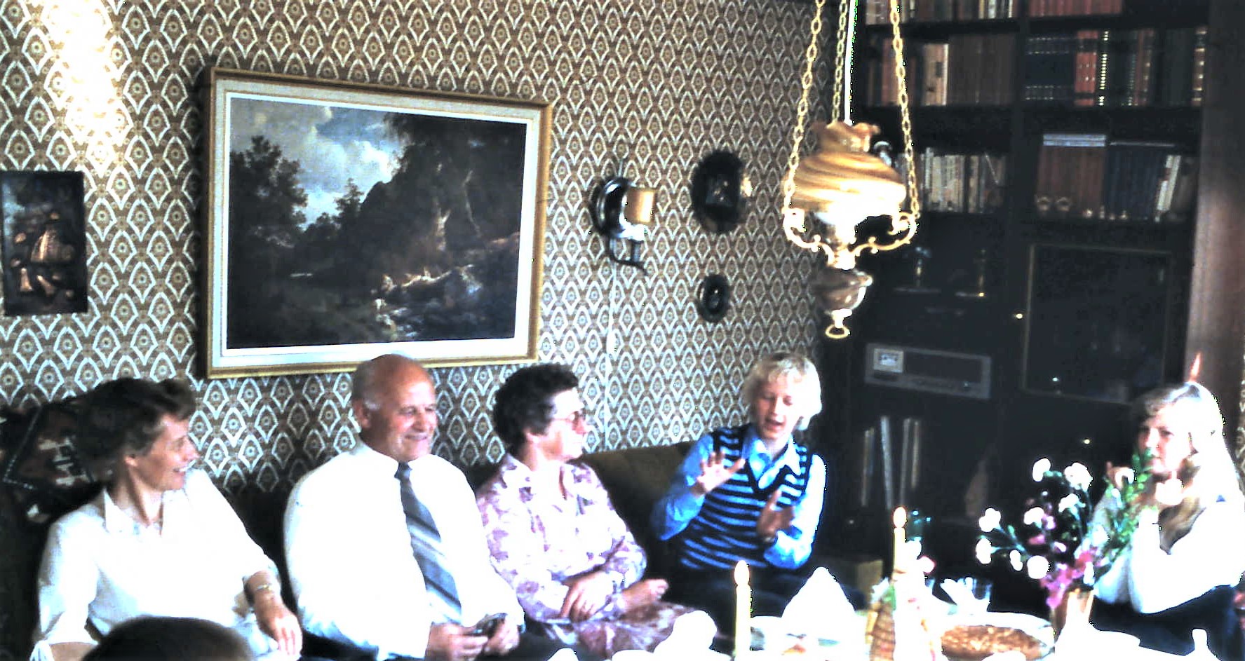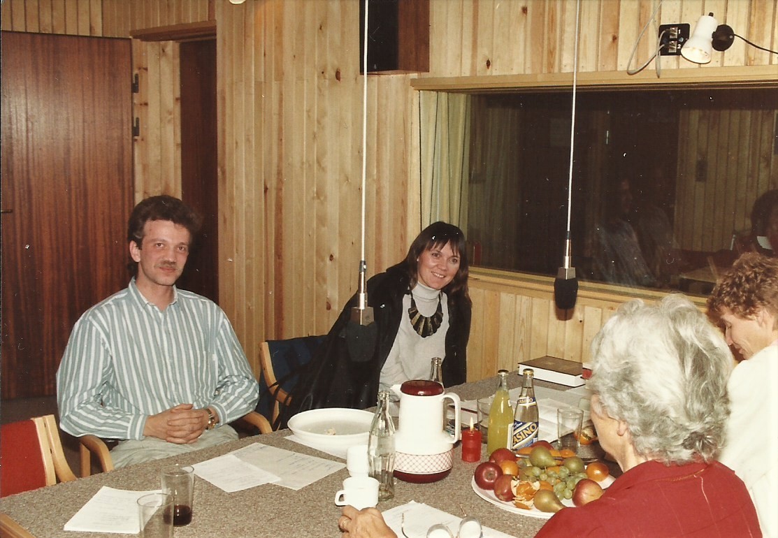 Det store bildet: På Fornebu. Vi gledet oss over å møte venner og familie, men vi savnet foreldrene våre som alle fire flyttet hjem til Jesus mellom 1985 og våren 1987, uten at vi hadde vært med i begravelsene. Tar med et par bilder av dem som minner fra vi var i Norge forrige gang (juli 1980 – desember 1983.